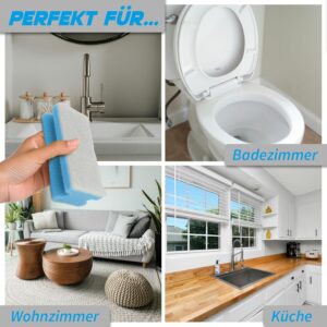 Die Schwämme sind in vier verschiedenen Farben erhältlich, was eine einfache Zuordnung zu spezifischen Reinigungsbereichen ermöglicht. Sie können beispielsweise eine Farbe für das Bad und eine andere für die Küche festlegen, um eine hygienische Trennung der Einsatzbereiche sicherzustellen.