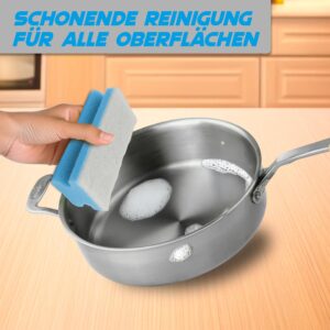 Die Schwämme wurden mit einem ergonomischen Design entwickelt und verfügen über eine praktische Griffmulde für optimalen Halt. Mit ihrer Größe von 15 x 7,5 x 4,5 cm liegen sie ideal in der Hand und ermöglichen auch bei anspruchsvollen oder stark beanspruchenden Reinigungsaufgaben eine komfortable Bedienung.