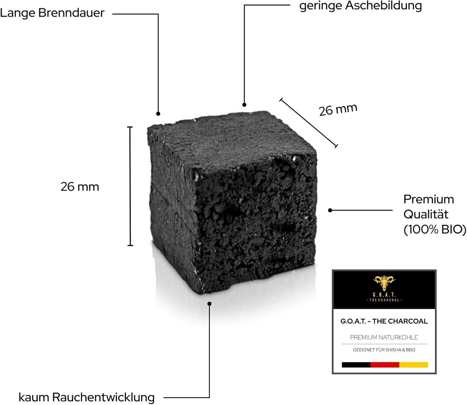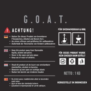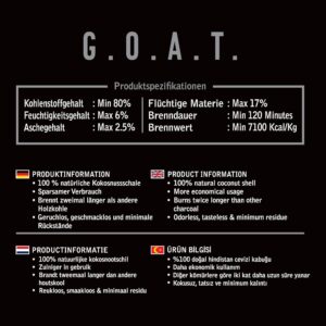 - Premium Qualität – G.O.A.T Naturkohlen werden exklusiv in Indonesien, unter deutschem Qualitätsmanagement hergestellt für garantierte gleichbleibende Qualität der Kohlenbriketts.