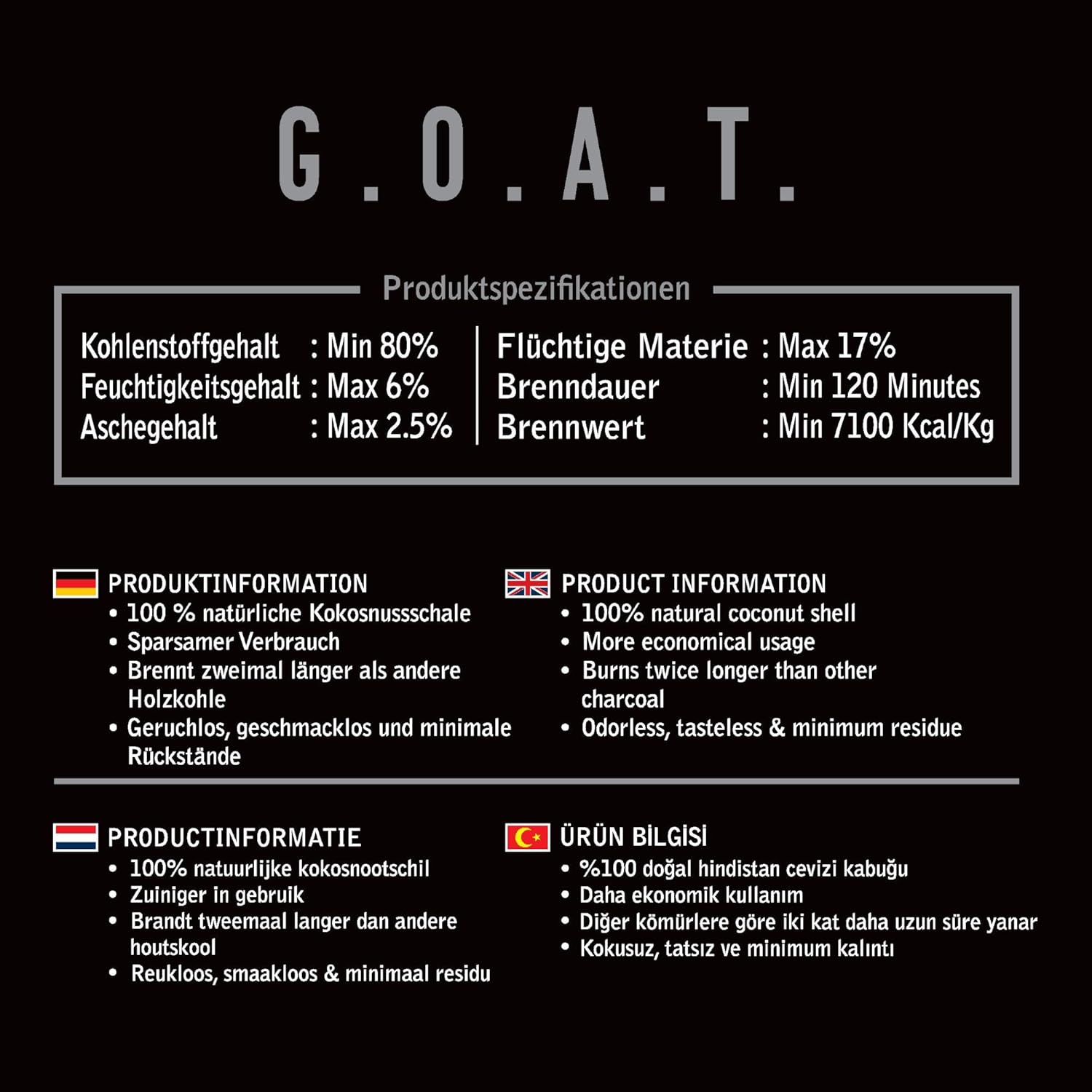 Produktbeschreibung für G.O.A.T Kokosnuss Kohle 1 kg 1
