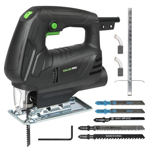 GALAX PRO Stichsäge 500W mit LED-Beleuchtung, 0-3000 U/min, 6-stufiger Drehzahlregelung, inkl. Holzsägeblätter, Metallsägeblätter, Führungsschiene und Kohlebürsten - für Holz/Metall/KunststoffGALAX PRO Stichsäge 500W mit LED-Beleuchtung, 0-3000 U/min, 6-stufiger Drehzahlregelung, inkl. Holzsägeblätter, Metallsägeblätter, Führungsschiene und Kohlebürsten – für Holz/Metall/Kunststoff