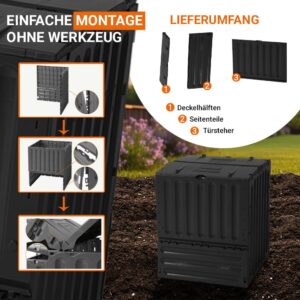 - Besonders großes Fassungsvermögen: Mit 600 Liter Volumen eignet sich das Modell hervorragend für mittelgroße bis große Gärten mit hohem Aufkommen an Schnittgut und Küchenabfällen.