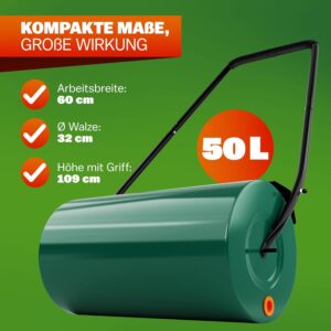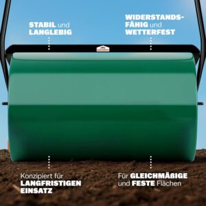 - • Leicht zu transportieren und zu lagern – mit nur 11,5 kg Leergewicht lässt sich die Walze problemlos im Schuppen oder Keller verstauen