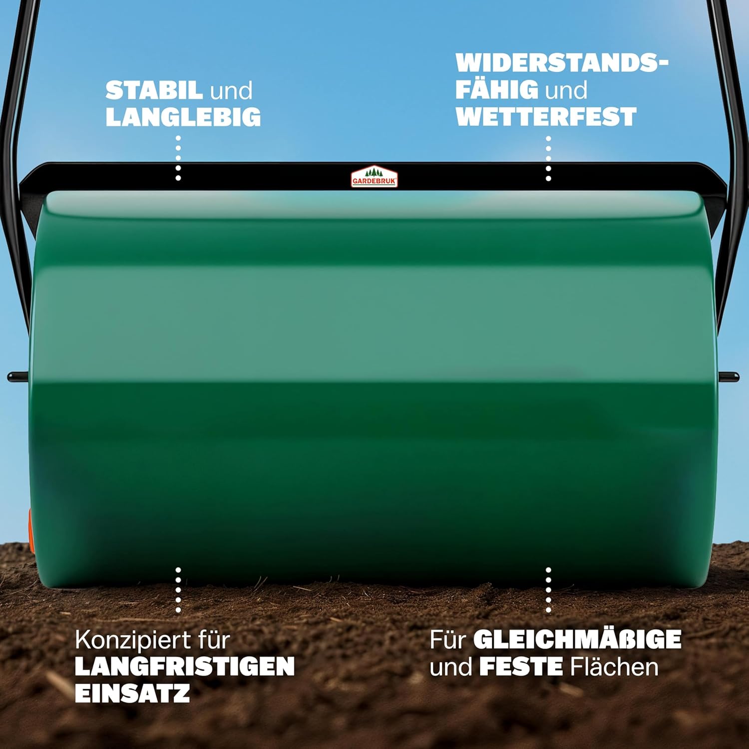 Die Gardebruk® Rasenwalze 60cm 50L ist ein praktischer Helfer für alle Gartenbesitzer, die ihren Rasen professionell anlegen oder pflegen möchten. Mit einer Arbeitsbreite von 60 cm und einem Füllvolumen von 50 Litern verdichtest du Mutterböden, drückst Saatgut fest oder ebnest unebene Rasenflächen effizient. Ideal für Hobbygärtner und ambitionierte Gartenbesitzer, die Wert auf gepflegte Grünflächen legen.