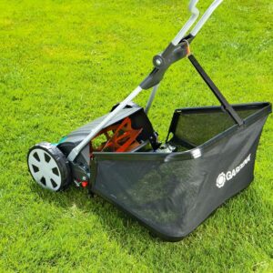 - Platzsparendes Design: Durch das klappbare Gestänge lässt sich der Mäher nach getaner Arbeit platzsparend im Gartenhaus oder in der Garage verstauen.