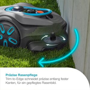 - Trim-to-Edge Funktion: Fährt präzise an Mauern und Zäunen entlang, wodurch du dir das zeitintensive Nachschneiden mit dem Rasentrimmer fast vollständig sparst.