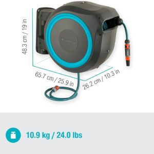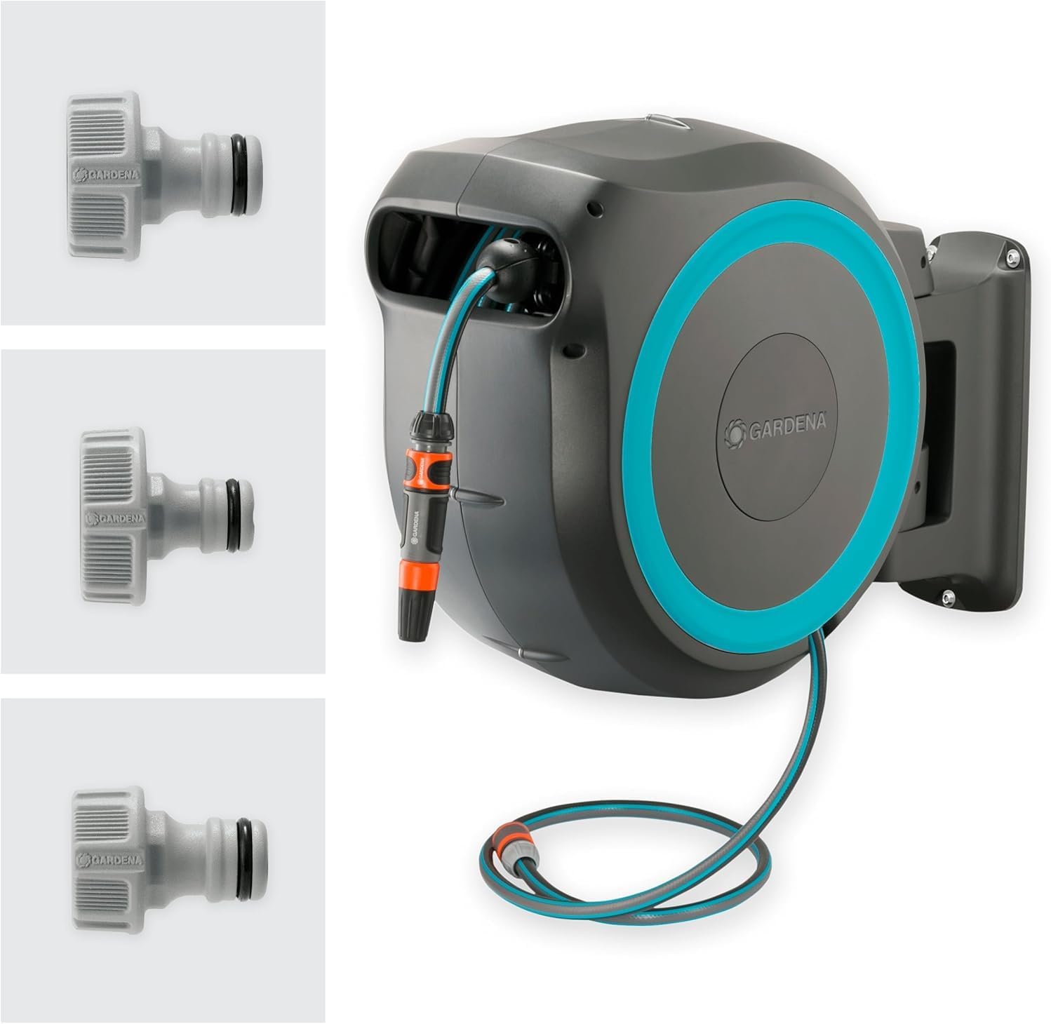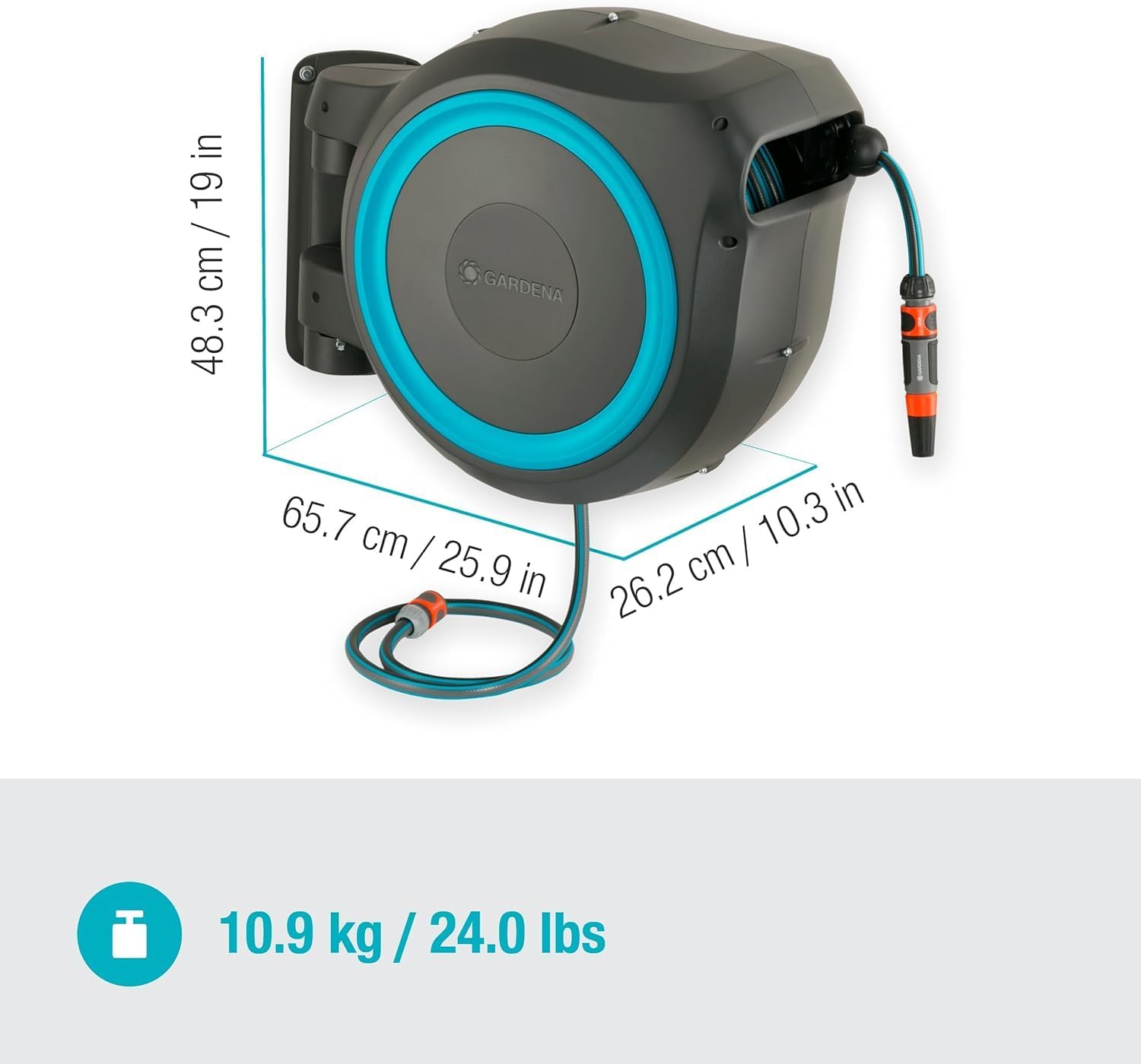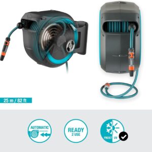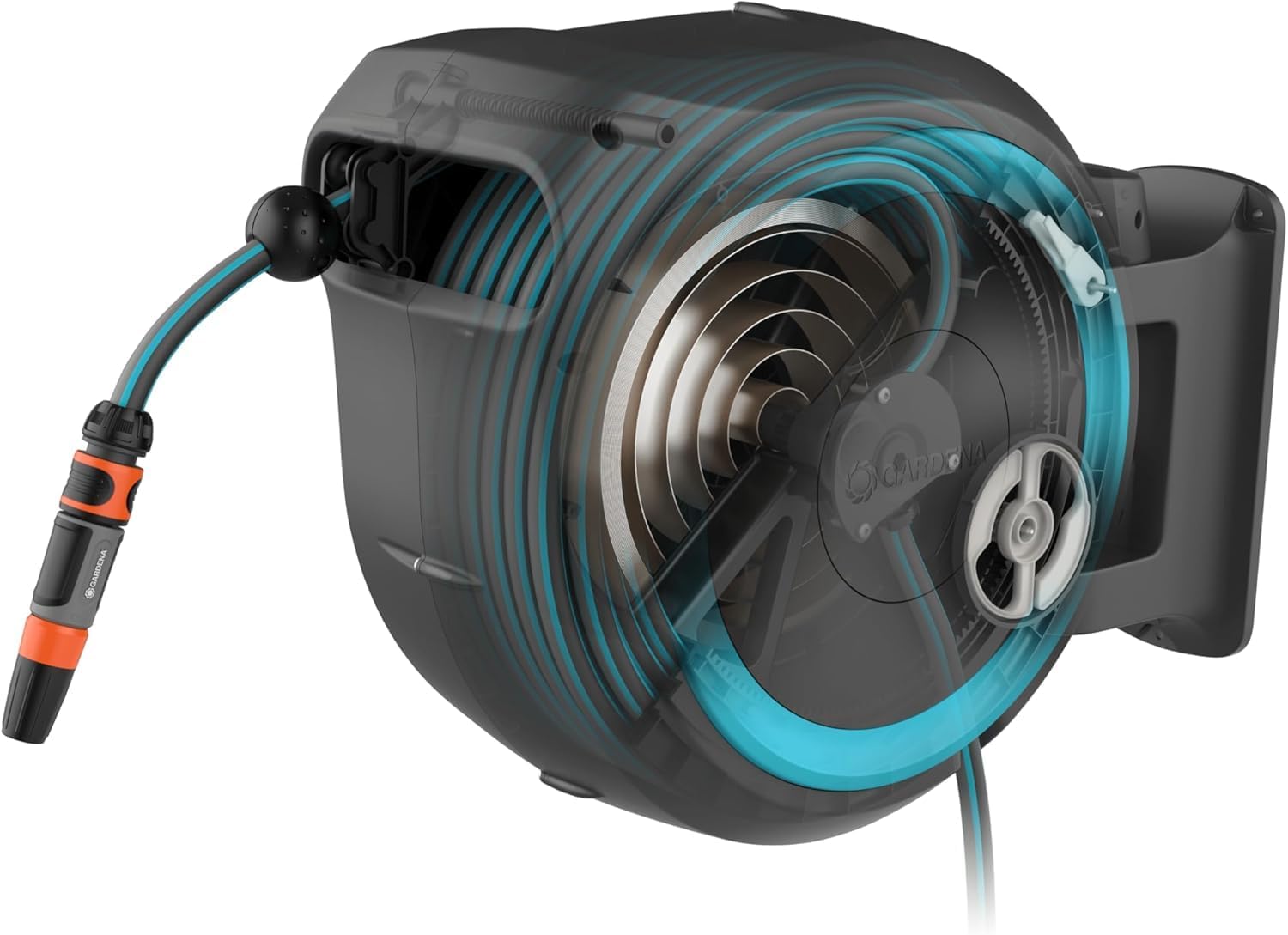 - Automatisches Aufrollen: Dank Fliehkraftbremse zieht sich der Schlauch kontrolliert und ohne Verknoten von selbst ein, was Zeit spart und den Schlauch schont.
