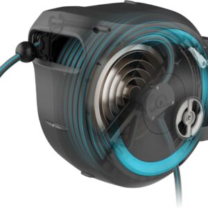 Die Aufrollautomatik arbeitet mit einer integrierten Fliehkraftbremse, die den Schlauch sicher und kontrolliert einzieht. Durch eine integrierte Schlauchführung wird zudem sichergestellt, dass sich der Schlauch sauber aufrollt, ohne zu verknoten oder abzuknicken. Dieses System sorgt dafür, dass Sie den Schlauch jederzeit mühelos und ohne manuelles Aufwickeln verstauen können.