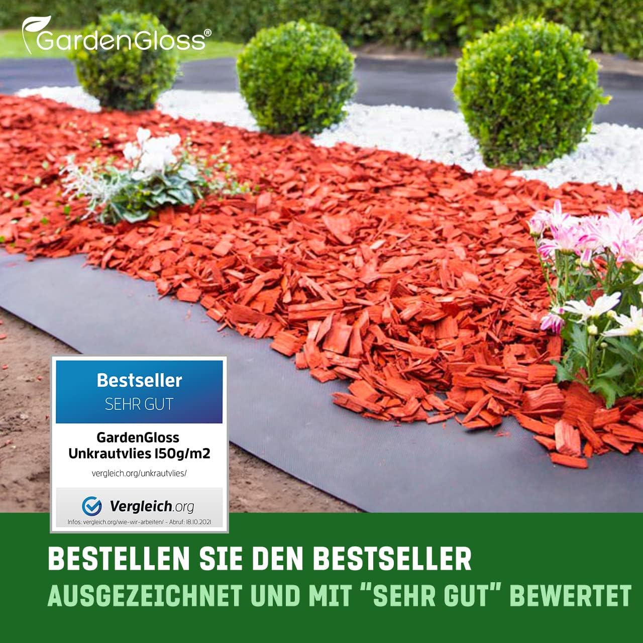 Für mich kommt es immer auf die Belastung an – wenn nur Rindenmulch draufkommt, reicht leichteres Material. Willst du aber schweren Kies oder Ziersteine verwenden, landest du zwangsläufig bei Modellen wie diesem GardenGloss Vlies mit 150g/m². Die hohe Reißfestigkeit macht den Job beim Verlegen einfach deutlich stressfreier, weil es nicht bei jeder kleinen Falte direkt nachgibt.