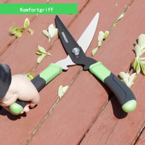 - SK5-Stahlklingen: Die wärmebehandelten Klingen gewährleisten eine hohe Schnitthaltigkeit und ermöglichen saubere Schnitte, die das Pflanzengewebe schonen und das Risiko von Krankheiten am Gehölz minimieren.