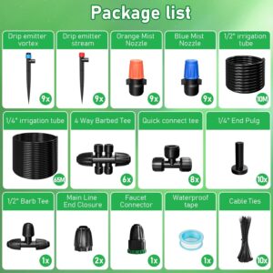 Das Set ist sehr umfangreich ausgestattet und umfasst insgesamt 152 Komponenten. Dazu gehören ein 10M Hauptrohr (4/7) sowie ein 65M Verteilerrohr (8/12), die Ihnen genügend Zubehör bieten, um eine effiziente Bewässerungsanlage zu bauen.