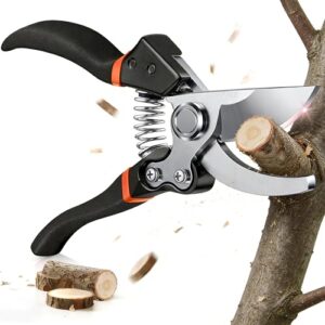 Gartenschere mit SK-5 Stahl & Sicherungssperre, Rostfreie Rosenschere profi für Äste bis 25mm, Rutschfester Griff, Pflanzenschere für Rosen, Sträucher, Bonsai