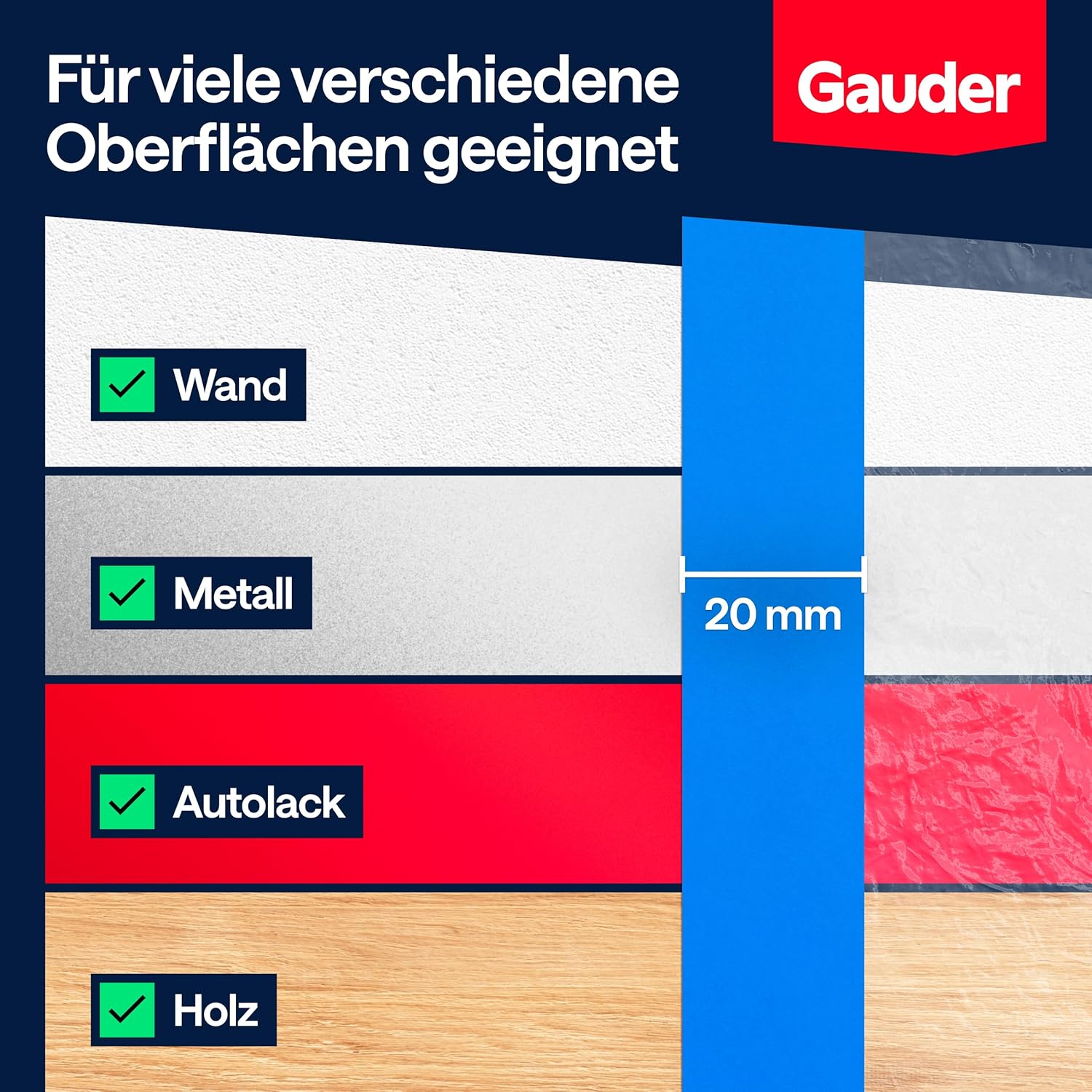 Die Marke GAUDER steht für Qualität, was sich auch in einer guten Bewertung von 4,5 von 5 Sternen widerspiegelt. Das Klebeband ist so konzipiert, dass es sicher haftet, sich nach dem Gebrauch jedoch rückstandslos wieder entfernen lässt, ohne den Untergrund zu beschädigen.