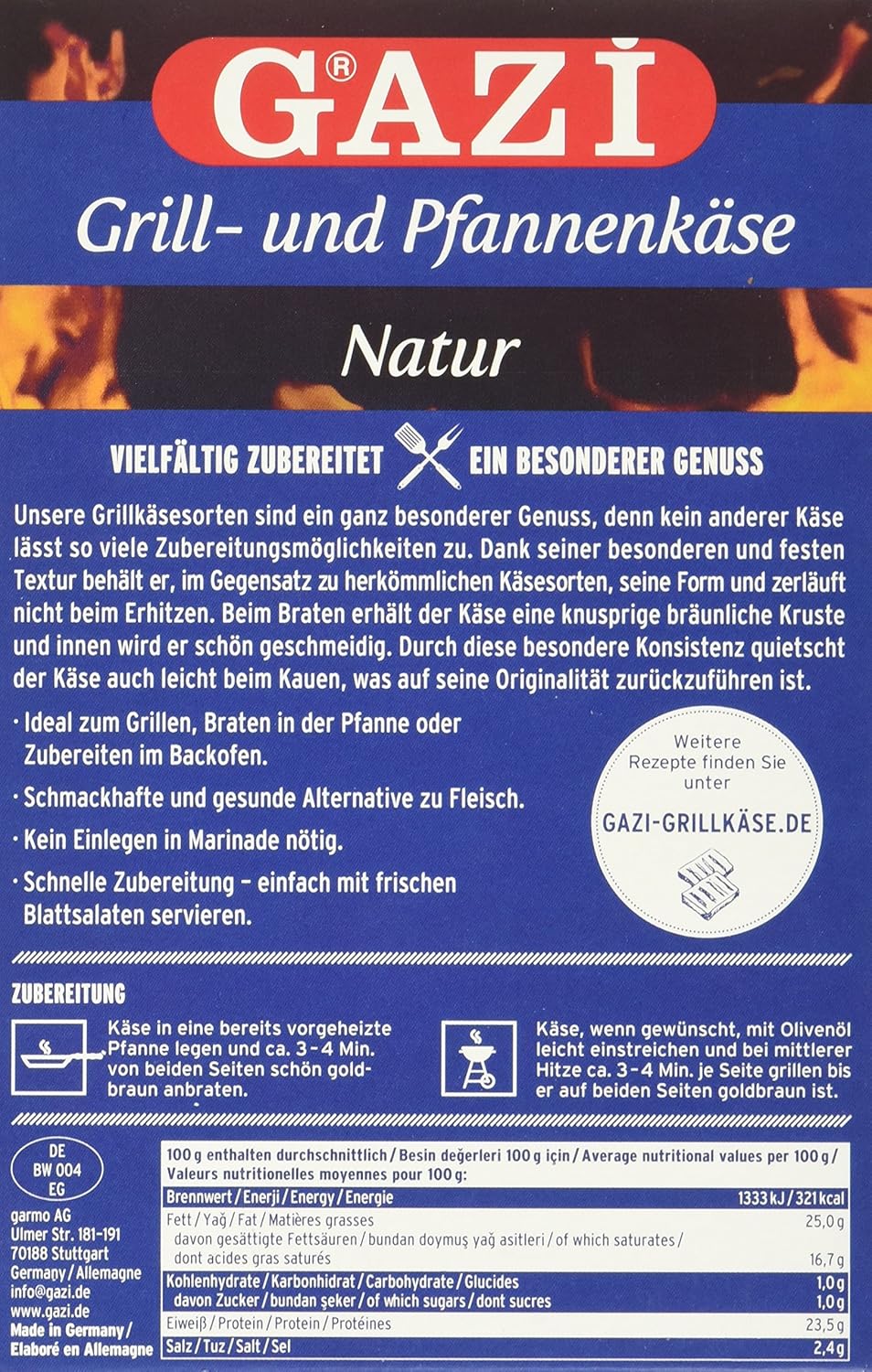 | Produktname | Gazi Grill- und Pfannenkäse natur |