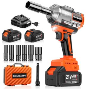 GEARLASSO 1/2" Akku-Schlagschrauber 1600N.M (1200Ft-lbs) Bürstenloser Impact Wrenches, Hochdrehmoment-Schlagschrauber, 21V 2x4.0Ah Akkus Elektro-Schlagmotor Variable Geschwindigkeiten für Auto/LKW/RV