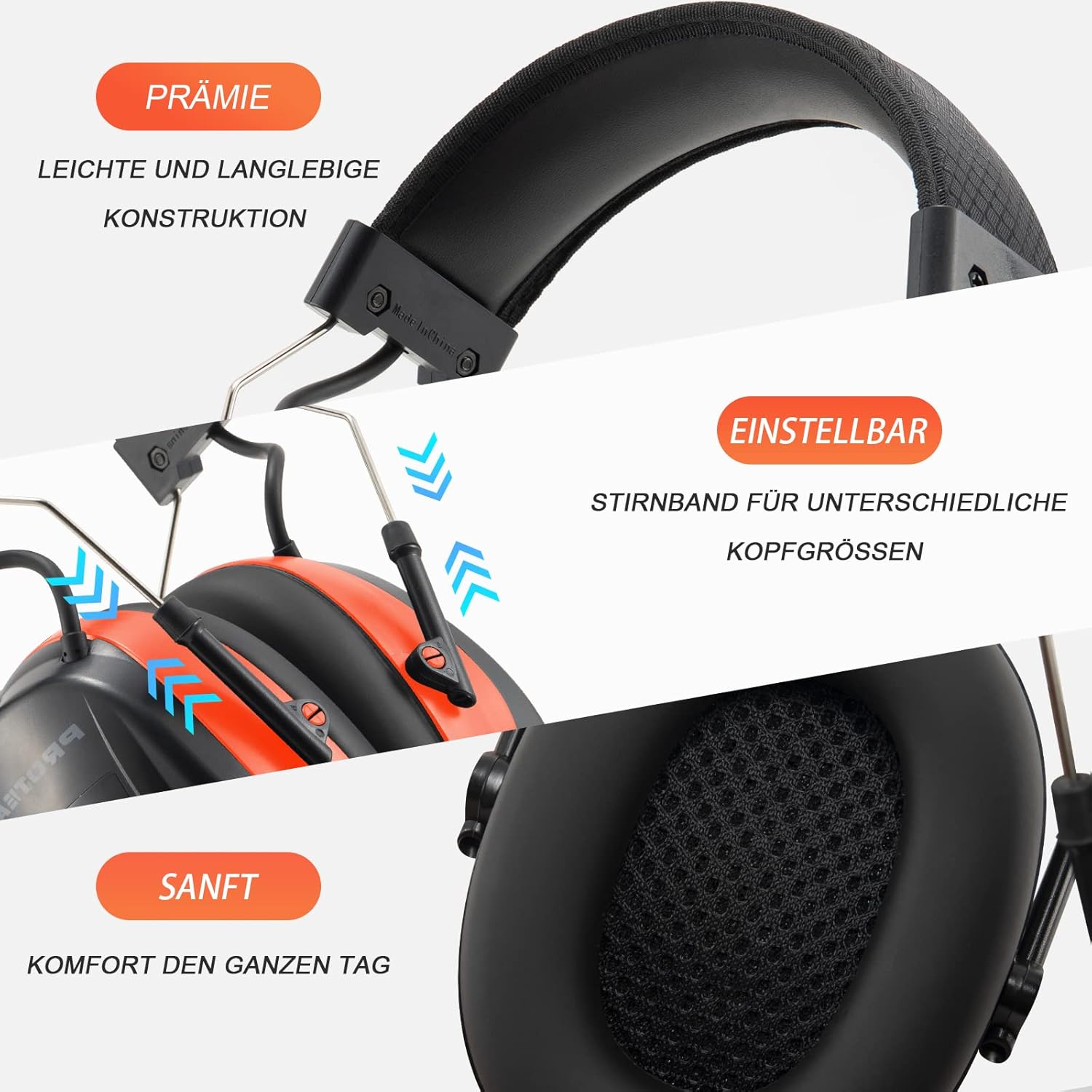 - Ergonomisches Design: Durch den Einsatz von zweilagigem Memory-Schaum auf den Polstern bleibt der Tragekomfort auch bei langen Arbeitseinsätzen stabil und angenehm.