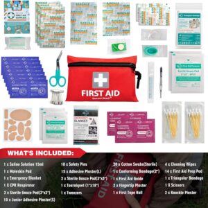 Mit insgesamt 92 enthaltenen Einzelteilen bietet das Set eine solide Grundausstattung für verschiedene Unfallsituationen. Es eignet sich hervorragend für den Einsatz zu Hause, im Büro oder unterwegs, um bei kleineren Verletzungen und Notfällen schnell reagieren zu können.