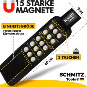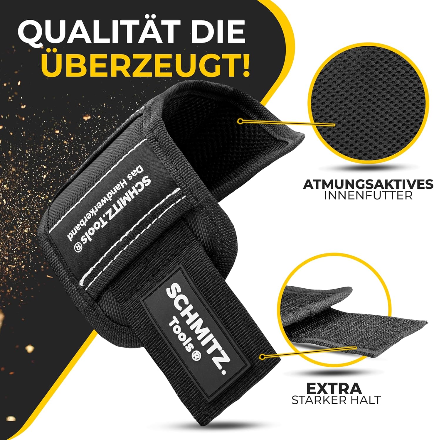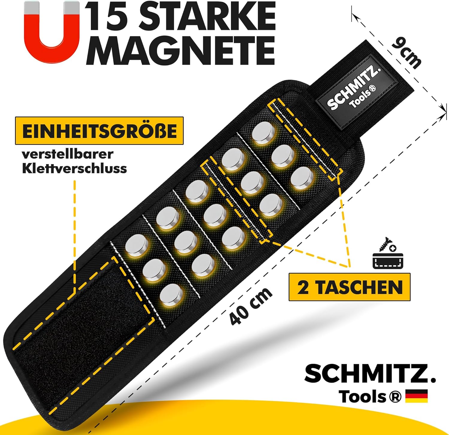 - Direkter Zugriff: Schrauben, Nägel, Muttern und Bits haften bombenfest am Armband, sodass beide Hände für die eigentliche Arbeit frei bleiben.