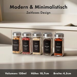 ![Gewürzgläser Eckig Set mit Edelstahl Deckel (24 x 120ml) Gewürzstreuer mit Streueinsatz und 240 Etiketten Schwarz - Hochwertige Gewürzbehälter, Gewürzdosen, Gewürze organizer [10,7cm x 4,5cm] – Bild 4](https://werkking.de/wp-content/uploads/2026/04/81Sjos9ej5L._AC_SL1500_.jpg)