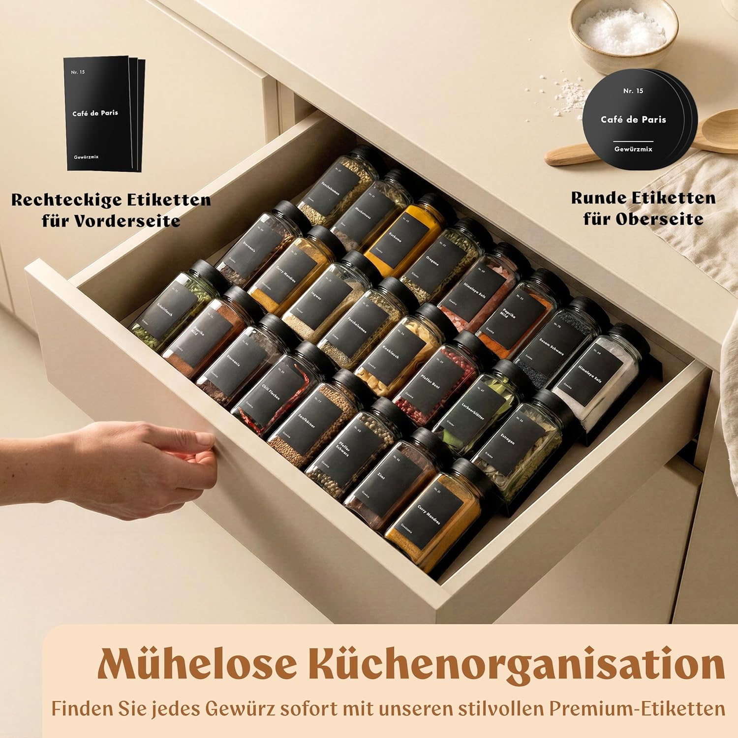 ![Gewürzgläser Eckig Set mit Schwarzem Deckel (24 x 120ml) Gewürzstreuer mit Streueinsatz und 240 Etiketten Schwarz - Gewürzbehälter, Gewürzdosen, Gewürze organizer [10,5cm x 4,5cm] – Bild 3](https://werkking.de/wp-content/uploads/2026/04/81eUZDNHWvL._AC_SL1500_.jpg)