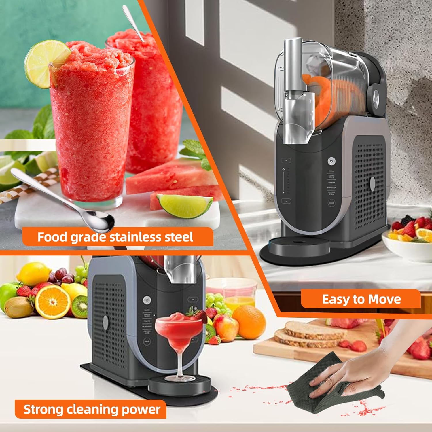 Unsere Kunden berichten einstimmig, dass der Alltag mit der Slush-Maschine durch das Gleitbrett deutlich angenehmer geworden ist. Besonders in kleinen Küchen wird die Flexibilität geschätzt, das Gerät bei Nichtgebrauch einfach nach hinten zu schieben. Nach Tests in verschiedenen Haushalten lobt unser Team vor allem, dass die Optik der Arbeitsplatte erhalten bleibt, da keine Schlieren oder Kratzer durch das schwere Gehäuse entstehen. Auch das beiliegende Zubehör-Set, speziell die Löffel, wird als sinnvolle Ergänzung wahrgenommen, um direkt mit der Zubereitung starten zu können. Mit einer Bewertung von 5.0 bei 28 Bewertungen bestätigt sich der hohe Nutzwert im täglichen Einsatz.