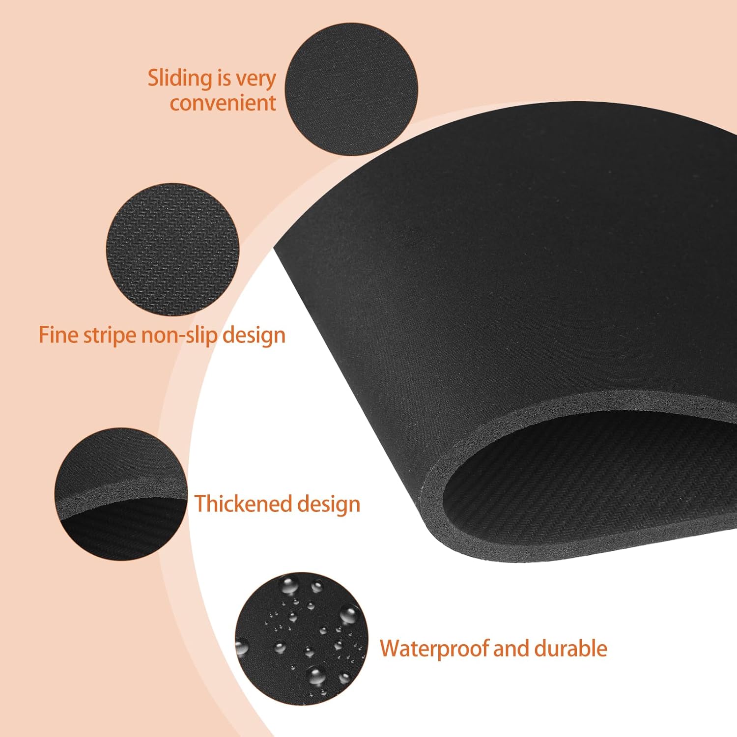 - Wartung: Prüfen Sie die Unterseite des Pads regelmäßig auf Krümel oder Staub, um die Gleiteigenschaften und die Rutschfestigkeit dauerhaft zu erhalten.