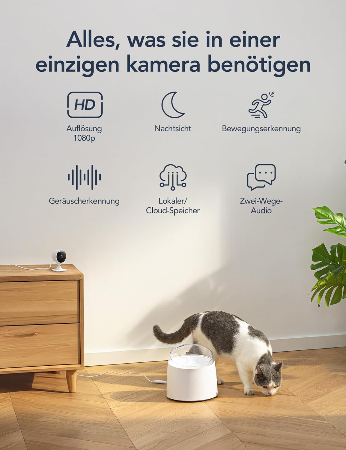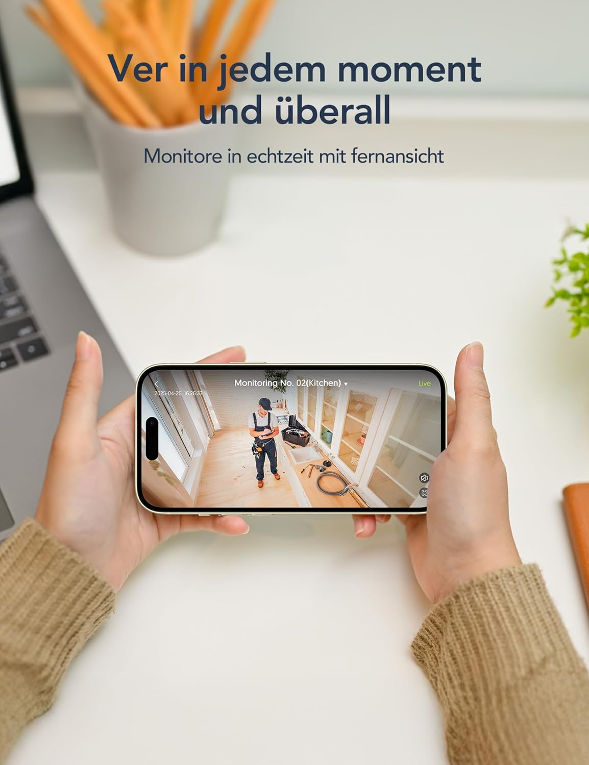 • Zwei-Wege-Audio & Privatsphäre-Modus: Über das integrierte Mikrofon und den Lautsprecher kommunizierst du bei Bedarf direkt in den Raum, während sich die Linse per App bei Nichtgebrauch physisch abschalten lässt.