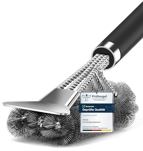 Grillbürste, TNTOR Grill Reinigungsbürste mit Extra Langer Edelstahl Borsten, Edelstahl Spatel und PP Wärmedämmung Griff, für Gasgrill, Holzkohlegrill, Kugelgrill, Elektrogrill und Grillrost.