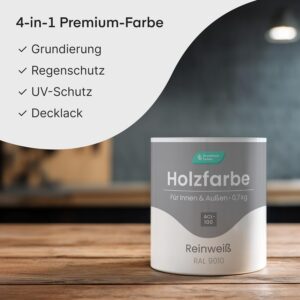 - Wetterfest für ganzjährige Außenanwendungen: Dank integriertem UV-Schutz vergilbt der Lack nicht und trotzt extremen Witterungsbedingungen.