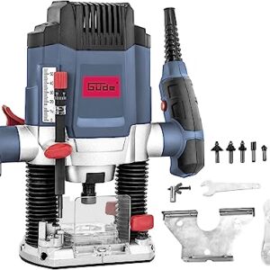 Güde 58117 Oberfräse OF 1200 E (1200 W, Hubhöhe: 55 mm, 7-fach einstellbarer Tiefenanschlag, Spannzangenaufnahme: 6 + 8 mm, 2-Säulen Führung, stufenlose Drehzahlregulierung, inkl. 6 Fräsaufsätze uvm.)