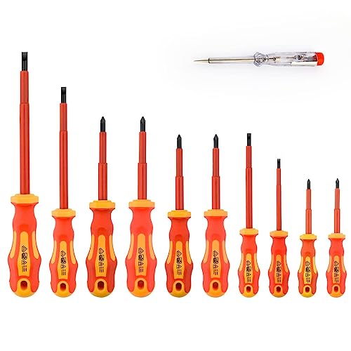 Gunpla 11-teilig VDE Isolierte Schraubendrehersatz inkl. Schlitz, Phillips und Pozidriv Schraubendreher mit Spannungsprüfer, 1000V, Kraftform-Griff