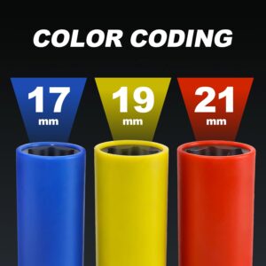 Aus unserer Erfahrung heraus sind die 17mm, 19mm und 21mm die „Brot-und-Butter-Größen“. Die Bauweise ist kompakt genug für enge Radnaben, aber lang genug, um auch tiefe Felgenschächte zu erreichen. Ein kleiner Hinweis zur Ehrlichkeit: Wenn du extrem festgerostete LKW-Radschrauben mit einem massiven Schlagschrauber lösen willst, stößt jedes Werkzeug irgendwann an seine Grenzen – für den normalen PKW-Gebrauch und leichte Transporter ist dieses Set jedoch absolut solide.