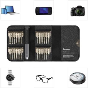 Hama Feinmechaniker Schraubendreher Set Mini (u.a. Kreuzschlitz, Schlitz, Torx Reparatur-Set magnetisch für Brille, Uhr, Laptop, Tablet, Handy, Kamera, Modellbau) Screwdriver, Werkzeugset 25-teilig –