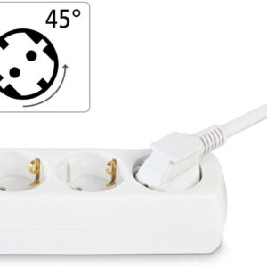 - Optimierte Steckplatz-Anordnung: Die um 45 Grad gedrehten Steckdosen erlauben den Anschluss von bis zu drei Winkel- oder Schutzkontaktsteckern, ohne dass diese sich gegenseitig blockieren.