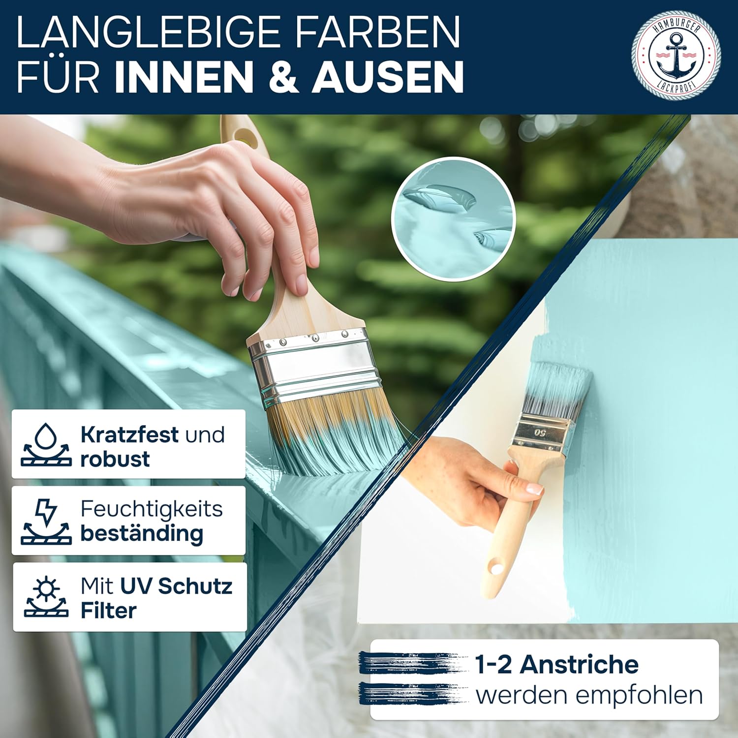 - Made in Germany: Eine kontrollierte Qualität sorgt für gleichbleibende Viskosität und hervorragendes Deckvermögen bei jedem Anstrich.
