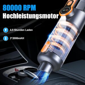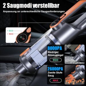 Handstaubsauger, 26000 Pa Akku Staubsauger Kabellos, One-Touch Staubentleerung, Bürstenloser Motor, 4-in-1 Multifunktionaler Auto Staubsauger Stark, mit HD Display und LED Beleuchtung, OrangeHandstaubsauger, 26000 Pa Akku Staubsauger Kabellos, One-Touch Staubentleerung, Bürstenloser Motor, 4-in-1 Multifunktionaler Auto Staubsauger Stark, mit HD Display und LED Beleuchtung, Orange