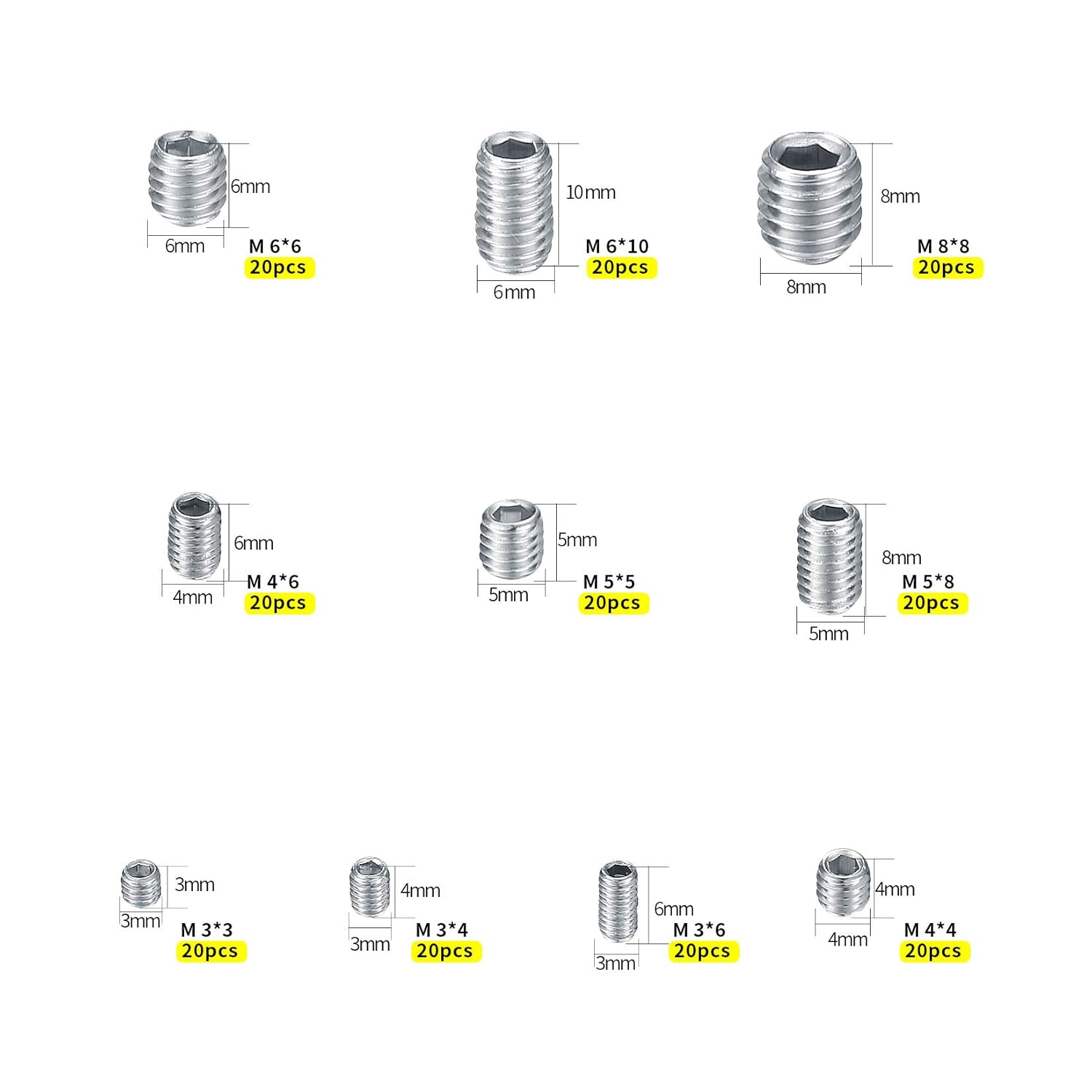 Produktbeschreibung für HAOCHEN 200 Stück M3 M4 M5 M6 M8 Gewindestifte