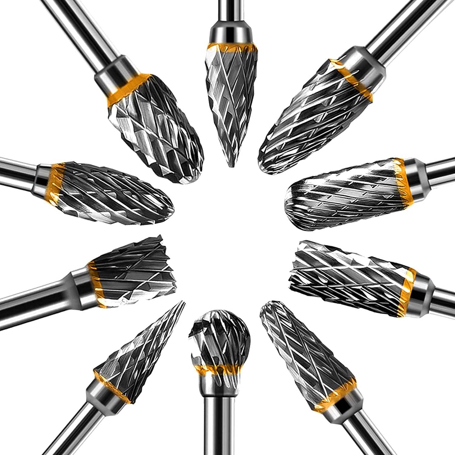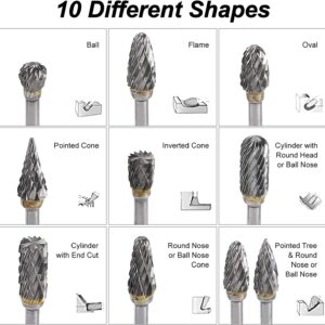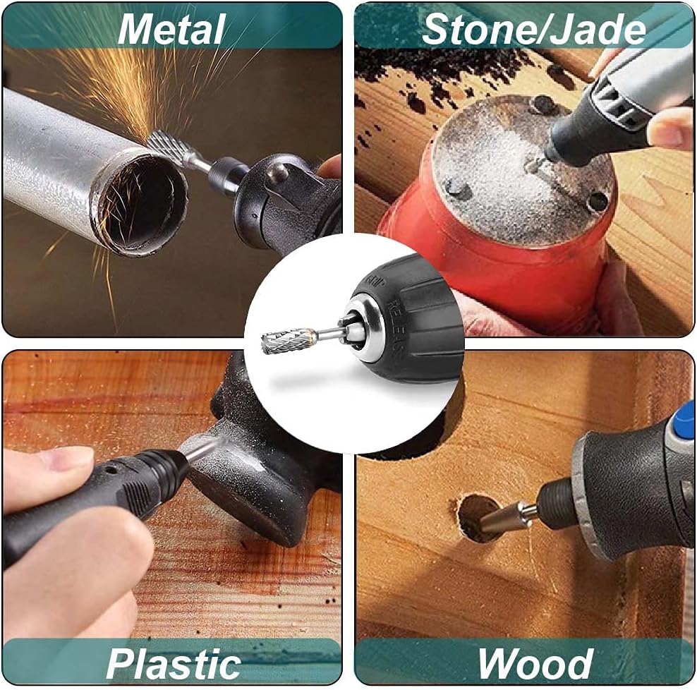 - 【MATERIAL】Rotationsfräser-Set hergestellt aus Hartmetall. Verwendet auf Holz, Eisen, Kohlenstoffstahl, legierter Stahl, Edelstahl, Kupfer, Aluminium und andere Metalle. Außerdem Marmor, Jade, Knochen etc.