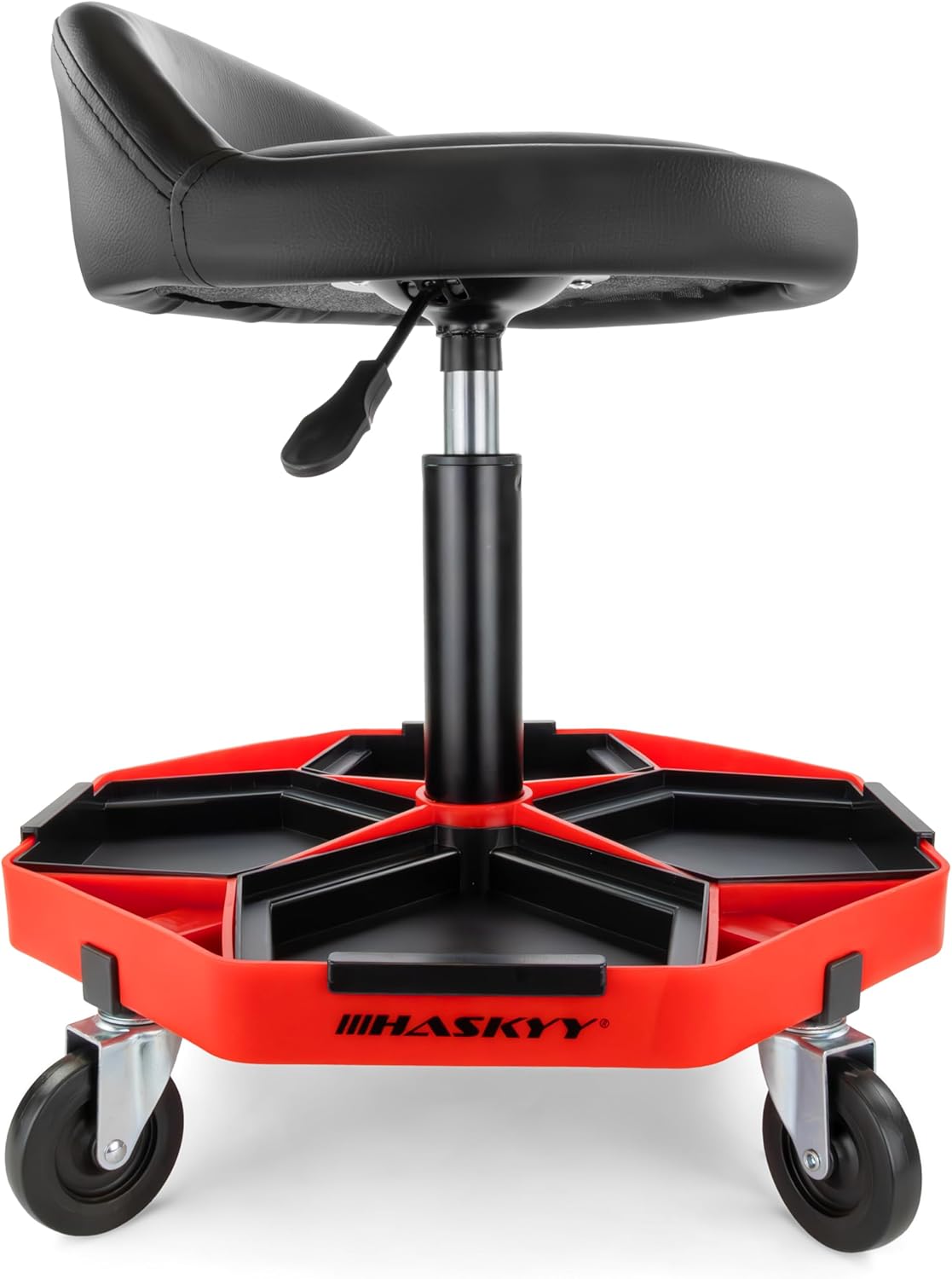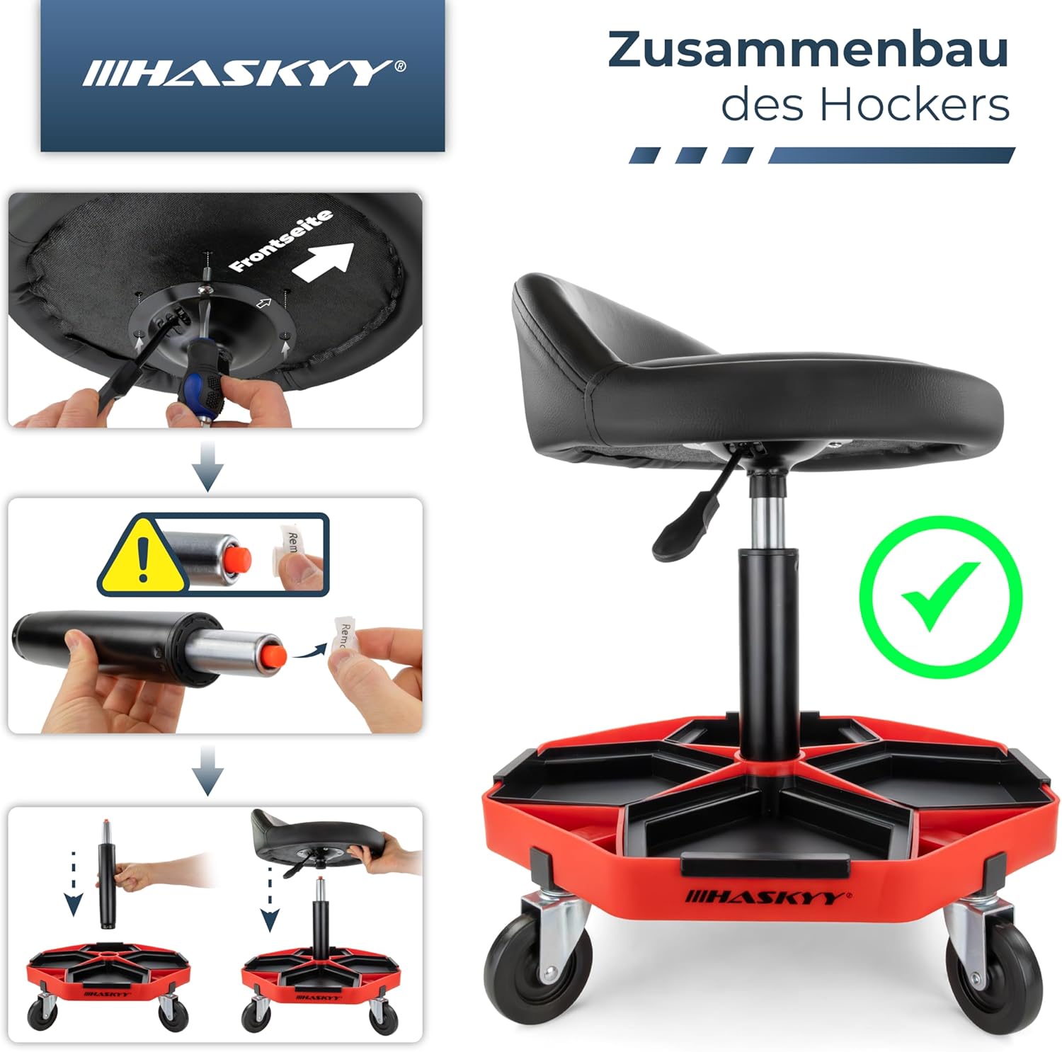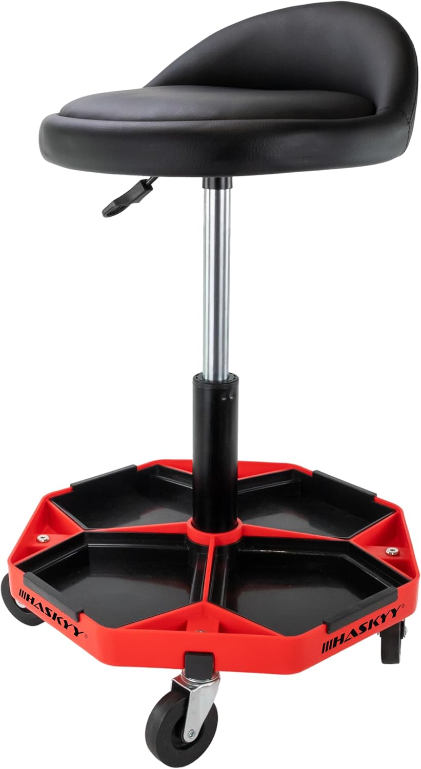 Der HASKYY Werkstatthocker mit Rückenlehne ist die optimale Sitzlösung für professionelle Mechaniker, ambitionierte Heimwerker und alle, die stundenlanges Arbeiten am Fahrzeug oder an der Werkbank rückenschonender gestalten möchten. Durch seine robuste Konstruktion und die hohe Beweglichkeit unterstützt dich dieser Hocker dabei, ermüdungsfrei und körpernah an komplexen Projekten zu arbeiten.