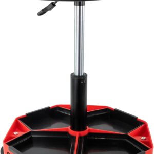 - • Integrierte Ablagefächer: Sorgt für Ordnung am Arbeitsplatz, da Schraubenzieher, Steckschlüssel oder Kleinteile griffbereit direkt unter der Sitzfläche verstaut werden können.