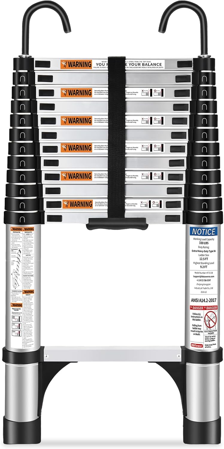 Die HBTower Teleskopleiter ist für eine hohe Belastung ausgelegt und trägt ein Gewicht von bis zu 330 Pfund. Aufgrund dieser stabilen Bauweise eignet sie sich ideal für eine Vielzahl von Aufgaben im Haus und Garten, sofern die zulässige Höchstlast nicht überschritten wird.