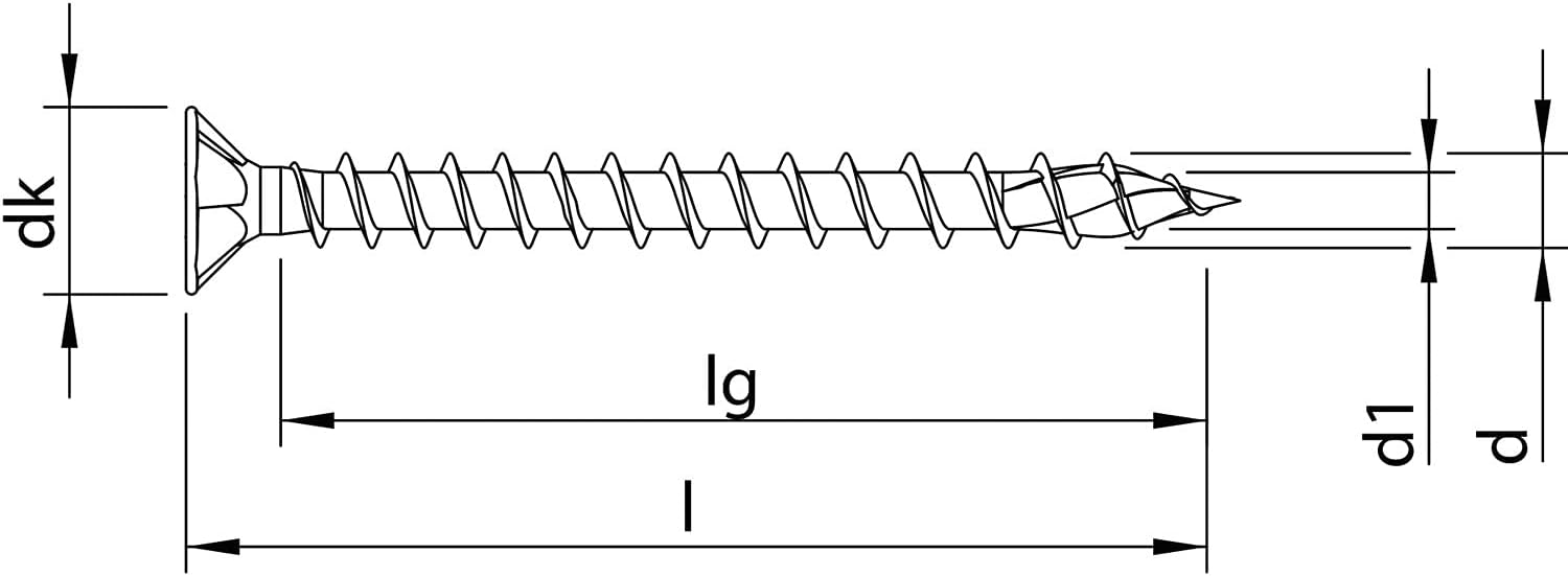 - Senkkopf mit Frästaschen: Versenkt sich selbstständig sauber im Holz – keine Vorbohren nötig, spart Zeit auf der Baustelle