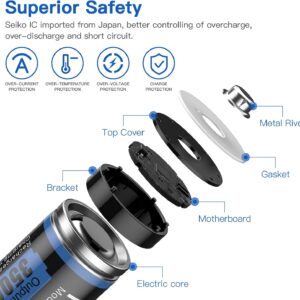 - [3500 mWh hohe Kapazität]: Die Hixon AA Lithium Akku hat unterschiedliche experimente durchgeführt und positive rohstoffe mit hoher dichte angewendet, um im vergleich zu der gleichen größe um etwa 15% höhere kapazität zu erhöhen.