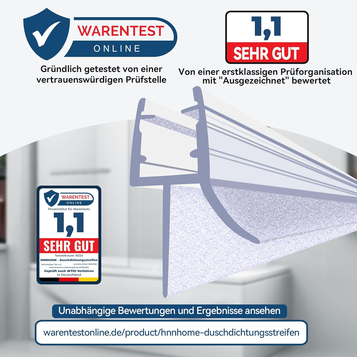 Unsere Kunden berichten regelmäßig, dass die HNNHOME Duschdichtung vor allem durch die Passgenauigkeit bei unterschiedlichen Glasstärken überzeugt. Viele Anwender, die zuvor Probleme mit auslaufendem Wasser hatten, bestätigen, dass durch die extra dicke Gummilippe eine signifikante Verbesserung der Abdichtung erzielt wurde.