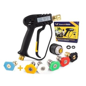 • [LEISTUNGSSTARK UND SCHNELL MONTIERT] – Der Druck erreicht 4000PSI für eine gründliche Reinigung; Der Quick Connect 1/4″ erleichtert das Anschließen der Düsen; Der M22 (14mm) Anschluss ermöglicht es, einen 14mm Schlauch eines Hochdruckreinigers oder den Karcher Adapter anzuschließen