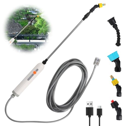 Hojalis Elektrischer Sprühstab, 3.7V Elektrischer Pflanzensprüher 4 Nebeldüsen und 5m Schlauch, 2 Leistungsstufen & Wiederaufladbare USB, Akku Drucksprüher für Garten,Terrasse,Rasen und Unkraut