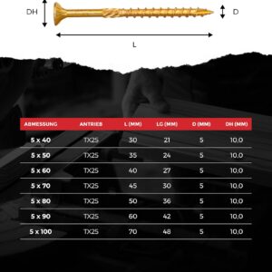 Technische Eigenschaften für das Produkt Holzbauschraube 5×80 mm – 200