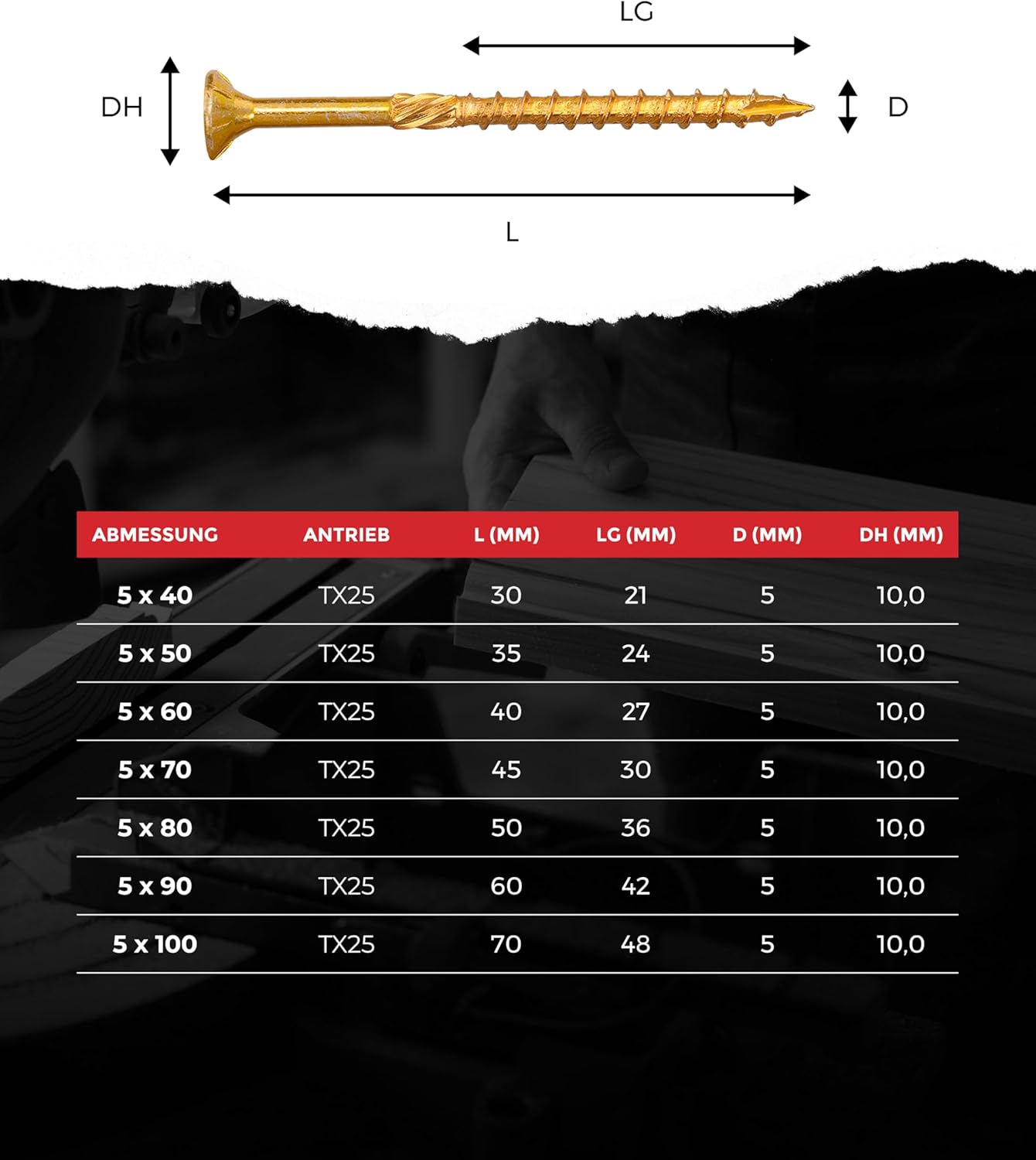 Vorteile des Produkts Holzbauschraube 5×80 mm – 200