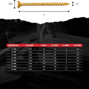 Technische Eigenschaften für das Produkt Holzbauschraube 6×100 mm – 100