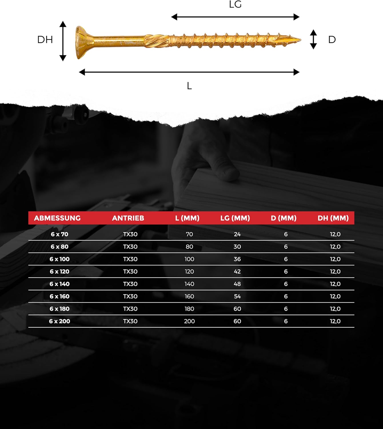 Vorteile des Produkts Holzbauschraube 6×100 mm – 100